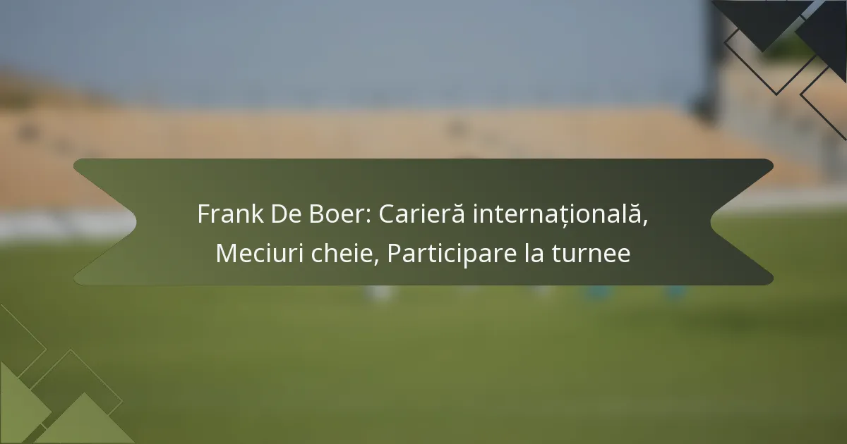 Frank De Boer a avut o carieră internațională deosebită cu echipa națională de fotbal a Olandei între 1990 și 2004, obținând peste o sută de selecții ca apărător versatil. Meciurile sale cheie în turnee majore, inclusiv Cupa Mondială FIFA și Campionatul European UEFA, au evidențiat abilitățile sale defensive și leadershipul, lăsând un impact durabil asupra…